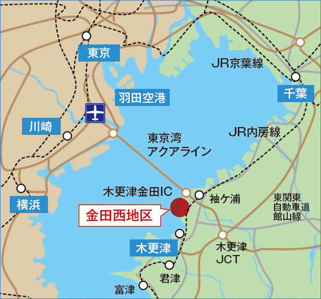 東京湾アクアラインで都心や横浜・川崎まで座って楽々アクセス。